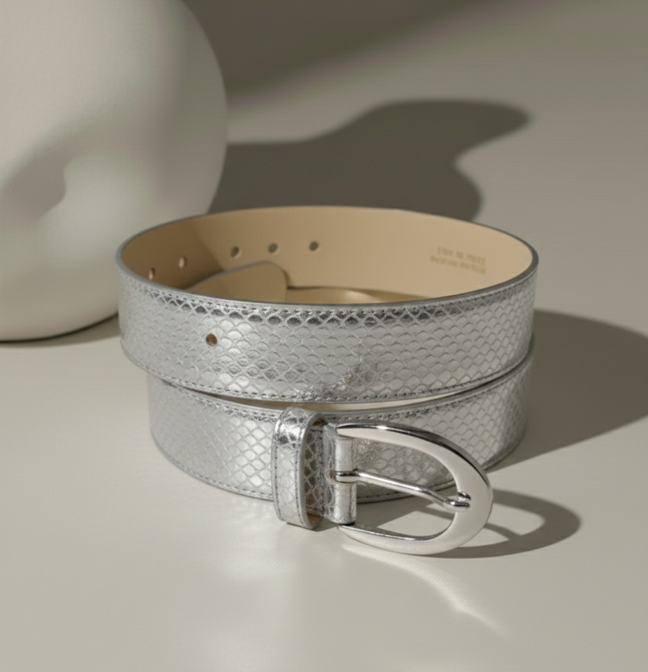 Alichi belt has been expertly handmade in Italy, crafted from python in silver with a silver buckle and hardware.